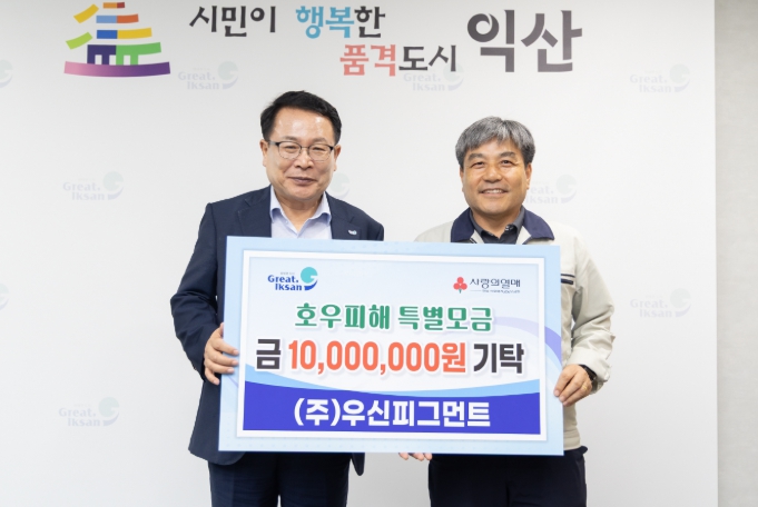 정헌율 익산시장은 "지역을 넘어선 연대와 협력에 힘을 보태준 ㈜우신피그먼트에 깊이 감사드린다"며 "호우 피해 지역 회복에 보탬이 되도록 성금을 소중히 전달하겠다"고 말했다.
