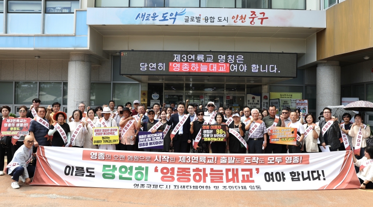 김정헌 구청장은 “제3연륙교 명칭 문제는 단순한 지명 다툼이 아니라 영종 주민의 정체성과 권리, 인천의 도시 위상과 직결되는 사안”이라며 “주민 공모를 통해 선정된 ‘영종하늘대교’를 무시하는 행위는 주민 참여 정신을 훼손하고 민의를 배신하는 결정”이라고 지적했다.