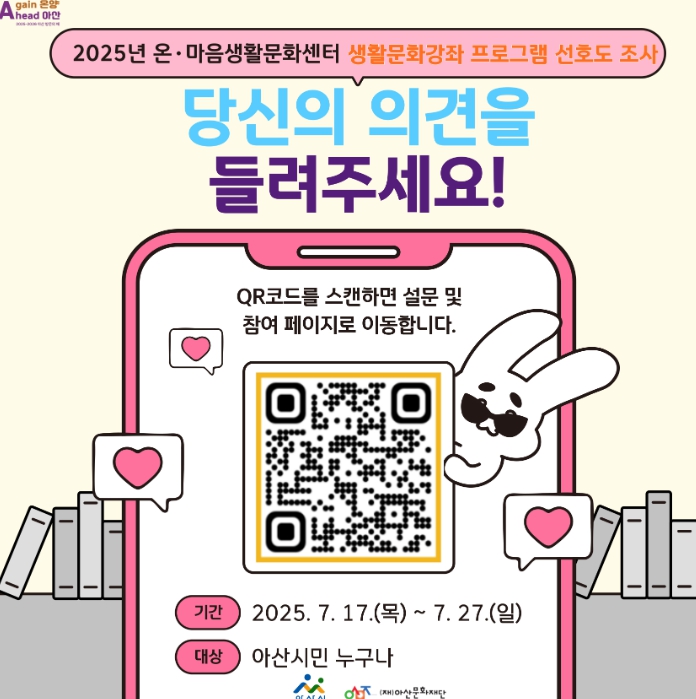 배방 온생활문화센터는 현재 2025년 하반기 문화강좌 프로그램 운영을 위한 선호도 조사를 진행 중이며, 지역 내 생활문화 동호회를 대상으로 한 공간 및 활동 지원사업도 함께 추진하고 있다.