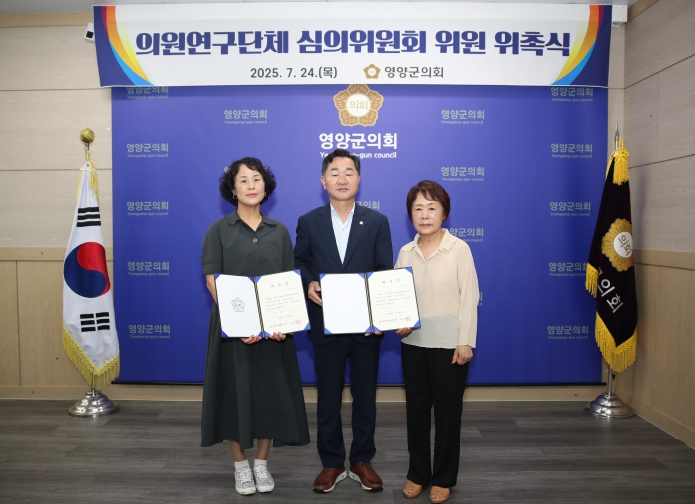 이날 김영범 의장은 “민간위원 위촉으로 더욱 공정하고 전문적인 심의가 기대된다”며 “올해 의원연구단체는 영양군정과 현안 문제에 대해 더욱 실효성 있는 연구가 이뤄지길 바란다.”고 당부했다.