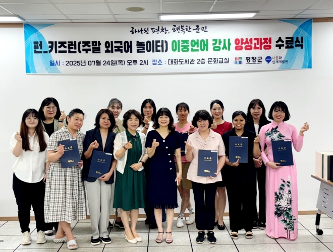 이정은 군 가족복지과장은 “그동안 많은 분의 노력에 감사드리며, 이번 과정을 통해 양성된 이중언어 강사들이 가족센터, 어린이집, 돌봄센터 및 향후 펀_키즈런(주말 외국어 놀이터)까지 다양한 기관과의 연계를 통해 강사로 활동할 수 있도록 지원할 것”이라고 전했다.