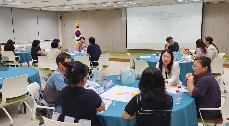 2부에서는 권혜교 강사가 ‘우리가 만드는 이음 활동 지침 – 이럴 때 이렇게!!’라는 주제로 각 현장의 사례 기반 토론으로 현장 지침을 체계적으로 정리하고 분임별 활동으로 향후 활동 방향을 논의했다.