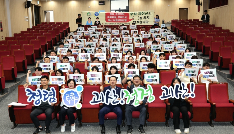 괴산군은 청렴도 향상을 위해 △청렴서약서 작성 △청렴자기학습시스템 운영 △자율적 내부통제 시스템 구축 △청내 ‘아침을 여는 청렴방송’ 운영 △청렴실천안내문 배부 등 다양한 청렴시책을 추진하고 있다.