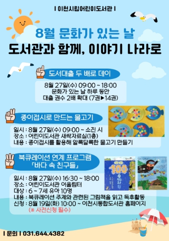 또한 어린이도서관 새싹자료실에서는 ‘종이 접시로 만드는 물고기’ 체험 활동이 열린다. 어린이들은 준비된 재료를 활용해 물고기를 만들며 놀이와 창작의 즐거움을 동시에 느낄 수 있도록 기획됐다.