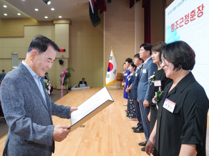 김지철 교육감은 “평생을 아이들과 함께하며 충남교육 발전에 헌신해주신 노고에 깊이 감사드린다”라며, “오늘의 정부포상은 개인의 영예이자 가족 모두의 결실로, 앞으로도 그 정신을 이어받아 모두가 함께 성장하는 교육을 실현하겠다”라고 말했다.