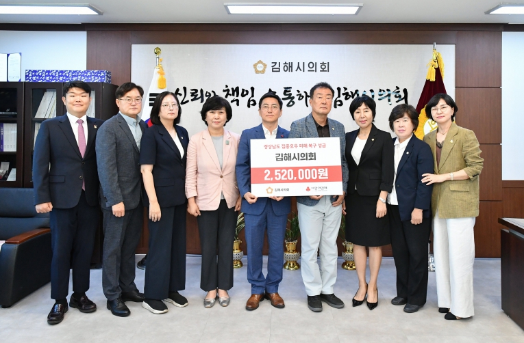 이번 성금은 김해시의회 의원들과 시의회 직원들이 십시일반 뜻을 모아 모금에 참여해 마련했다. 전달된 성금은 경남사회복지공동모금회를 통해 피해지역 복구와 피해 주민의 긴급 생계 지원에 사용될 예정이다.