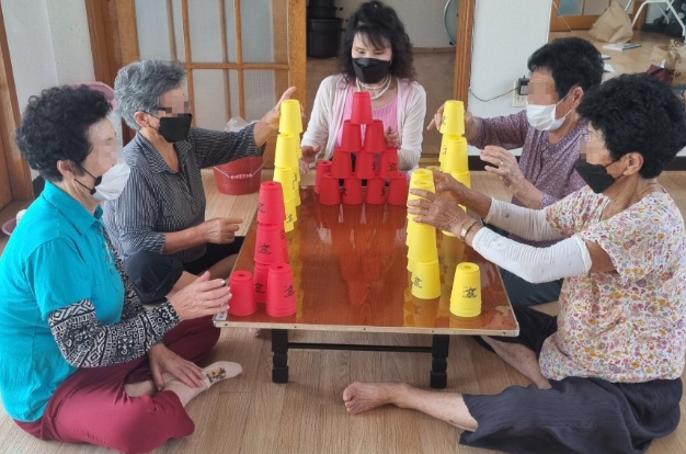주요 활동은 국어·산수 중심의 인지훈련 워크북 학습을 비롯해 끈 꿰기, 스티커 북, 칠교놀이, 컵 쌓기 등 다양한 인지 자극 프로그램으로 구성됐으며, 치매 예방 수칙에 대한 교육도 함께 진행됐다.