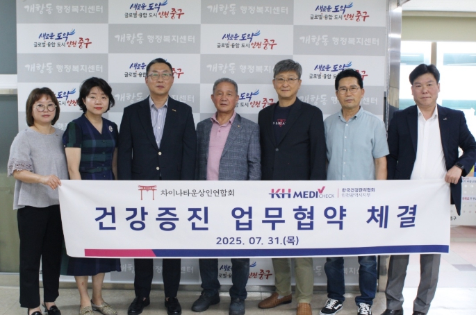 이날 협약식에는 건협 인천지부 이상철 본부장과 전략사업부 한성아 부장, 차이나타운상인연합회 이현대 회장, 개항동 김선금 동장 등 양 기관의 주요 관계자들이 참석했다.