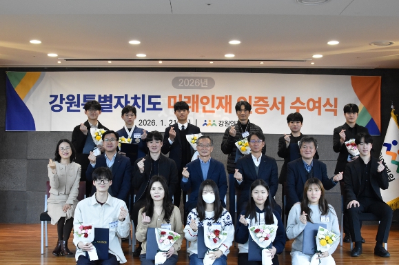 올해 선발된 미래인재는 ▲과학기술 분야 여승민(고려대 2년), 이재윤(민족사관고 3년), 채은우(대구경북과기원 1년), 황준서(서울과고 1년) ▲인문사회 분야 김정은(원주금융회계고 3년) ▲문화예술 분야 김시언(예원학교 3년), 윤시연(선화예고 1년), 이선우(선화예고 3년), 장세혁(한예종 2년) ▲체육 분야 고하루(강원체고 3년), 권 율(원덕고 1년), 이서아(봉의고 3년), 이태건(강원체중 3년) 이상 4개 분야 총 13명이다.