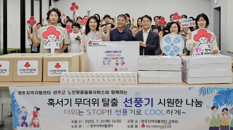 이날 현장에서는 한국새농민전북특별자치도회의 지정기탁을 통해 전북사회복지공동모금회가 준비한 냉방물품도 함께 전달됐다. 전달된 물품은 손선풍기 235대, 일반 선풍기 5대, 대형 선풍기 3대로, 자활 현장 종사자들의 건강 보호와 폭염 대응에 실질적인 도움이 될 것으로 기대된다.