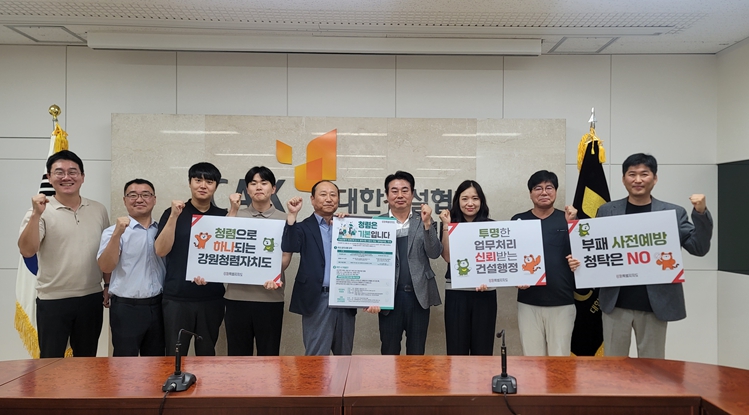 이번 캠페인은 건설분야 부패 발생을 사전에 예방하고 청렴의식을 확산하기 위해 추진됐으며, 건설 유관단체를 대상으로 ▲청탁금지법 주요 내용 ▲부패신고 방법 등에 대해 집중 안내했다. 특히 유관단체와 청렴 안내문 전달식을 통해 건설행정 전반에 대한 반부패·청렴 실천 의지를 다짐했다.