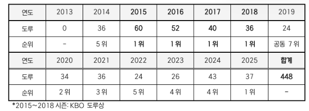 박해민은 7월 30일(수) 잠실 KT전에서 도루 1개를 추가하면서 450도루까지는 2개만을 남겨두게 됐다.