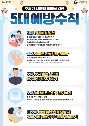 또한 의료기관, 요양병원, 장기요양기관 등 감염취약시설은 종사자와 방문자의 마스크 착용을 유도하고, 실내 환기를 주기적으로 실시하는 등 예방수칙을 강화해야 한다.