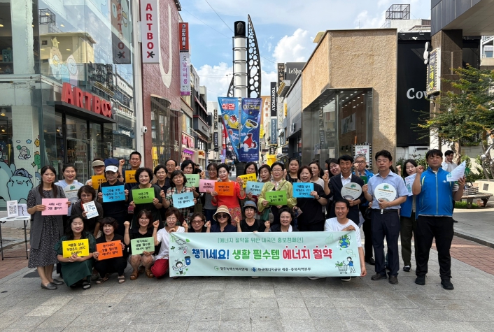 이번 캠페인에는 충북도, 청주시, 충북에너지산학융합원, 한국에너지공단 세종충북본부, 청주 녹색소비자연대 등 30여 명이 참여해 △적정 실내 온도 26℃ 이상 유지하기 △에너지 캐시백* △불필요한 전력사용 절감 등 에너지절약 실천 요령을 안내하는 길거리 캠페인을 추진했다.