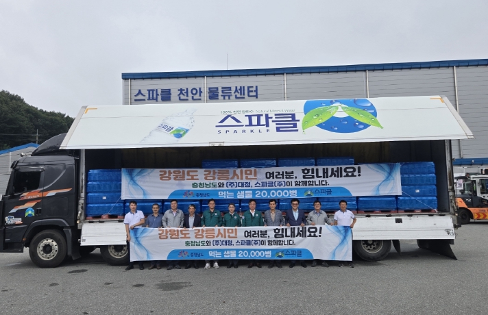 도내 먹는샘물 업체 ㈜대정·스파클(주) 협조 받아 2만병 긴급 수송강릉시에 생수지원[시티트리뷴] 충남도는 26일 최근 극심한 가뭄으로 식수난을 겪고 있는 강원도 강릉시에 도내 먹는샘물 업체인 ㈜대정과 스파클㈜의 협조를 받아 생수 2만병(22톤)을 긴급 지원했다고 밝혔다.
