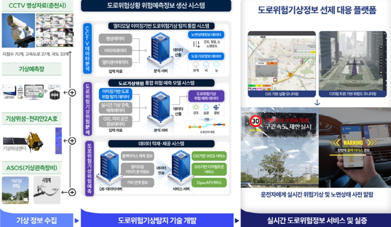 이번 우수사례에 선정된 본 사업은 과학기술정보통신부의 ‘지역 디지털 기초체력 지원 사업’의 일환으로, 안개나 블랙아이스 등으로 인한 노면이상과 위험기상을 AI 기반 플랫폼으로 사전에 탐지하고 대응하여 교통사고를 예방하는 시스템 구축을 목표로 하는 시범 프로젝트 사업이다.