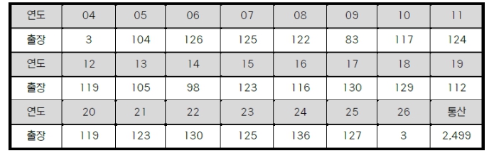 3월 31일 기준 통산 출장 경기 수 10위 이내의 선수 중 강민호가 유일한 포수로 이름을 올리고 있다. 포수 포지션에도 불구하고, 철저한 자기관리로 23년차인 지금까지 단 3시즌을 제외하고 모두 100경기 이상 출장하며 꾸준함을 보여줬다.