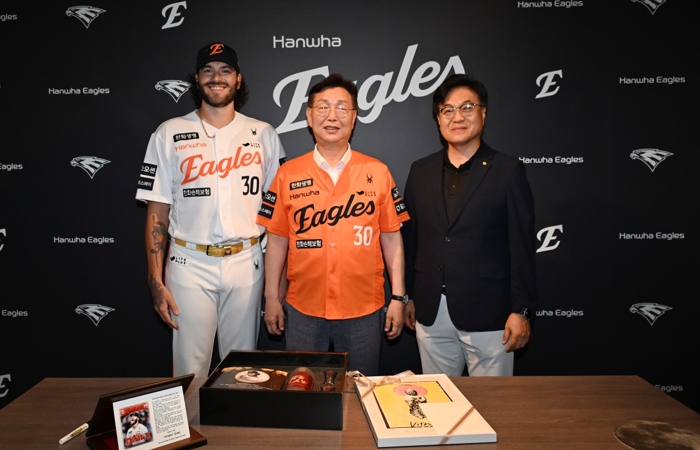 김제선 대전 중구청장은 지난 14일 대전한화생명볼파크를 찾아 폰세선수에게 축하와 감사의 글을 담은 패를 수여하고, 본인이 소장하고 있던 미술작품과 지역에서 생산한 증류주 세트를 선물했다.