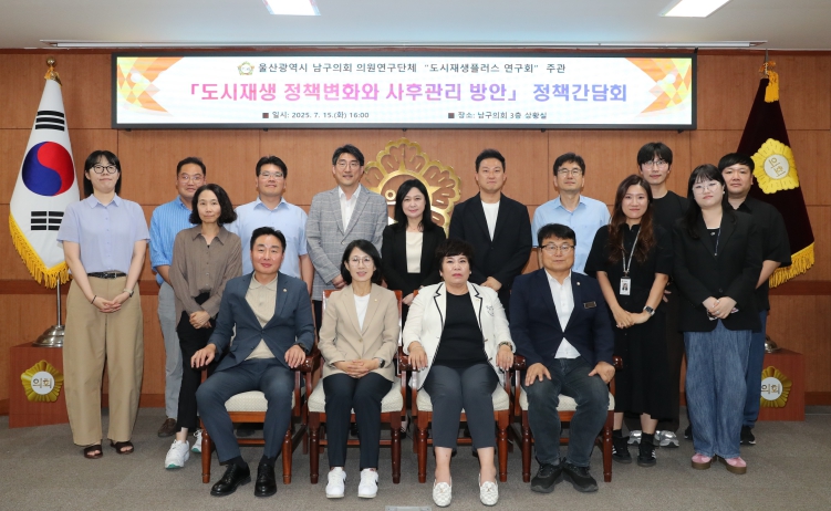 남구의회 의원연구단체인 도시재생플러스연구회는 15일 3층 의회상황실에서 전문가 초청 도시재생 정책간담회를 개최했다.
