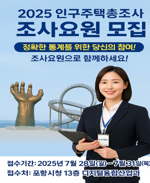 한편 ‘2025 인구주택총조사’는 5년 주기로 실시되는 국가 단위 대규모 조사로 포항시에서는 총 284명의 조사요원이 참여하며, 전국적으로는 약 3만 명이 고용될 예정이다.