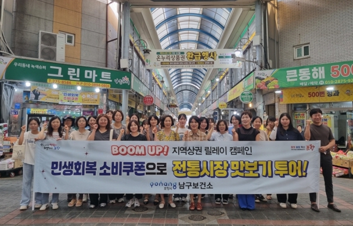 이날 행사에는 남구보건소 직원 40여 명이 참여해 민생회복 소비쿠폰을 활용해 직접 장을 보고, 시장 내 식당에서 점심식사를 하며 지역 상권에 활력을 더했다.