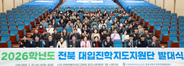 최은이 중등교육과장은 “2026년 전북 대입진학지도지원단은 단장과 팀장을 새롭게 선임하는 등 조직의 역동성과 책임성을 강화하고자 했다”며 “그간 축적된 전문성을 바탕으로 도내 모든 학생이 공정하고 체계적인 맞춤형 대입진학지도를 받을 수 있도록 대입진학 정보 제공 및 상담 역량을 지속적으로 제고해 나가겠다”고 말했다.