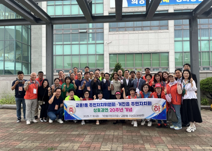 장진수 주민자치위원장과 이진수 교문1동장은 “20년 동안 꾸준한 교류를 통해 교문1동과 거진읍은 가족 같은 관계로 발전했다.”라며, “앞으로도 주민자치의 모범사례가 되도록 활발한 교류를 이어 나가겠다.”라고 전했다.