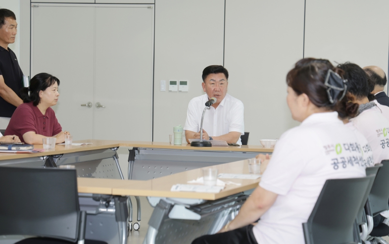 이 시장은 세척, 살균, 건조, 포장 등 센터 내 전 과정을 꼼꼼히 점검하고 근무자들과 일일이 인사를 나누며 애로사항을 청취했다. 특히 이날 차담에서는 작업장 내 온도 상승 문제와 초음파 수저세척기 및 컵렉 추가 도입, 물류 차량 리프트 설치 등 구체적인 의견들이 제기됐다.