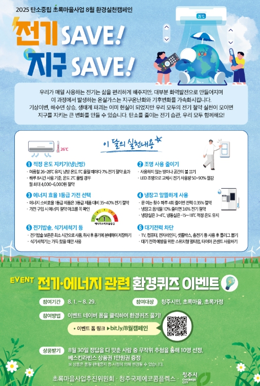 시민 누구나 참여할 수 있으며 청주에코콤플렉스 누리집과 SNS를 통해 참여 방법과 실천 팁을 확인할 수 있다.