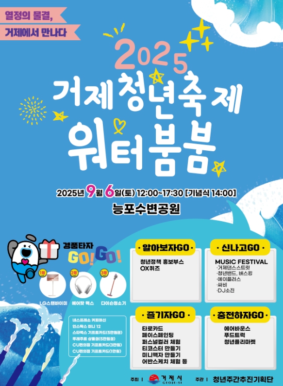 행사는 오후 12시부터 오후 6시까지 진행되며, 주요 프로그램으로는 뮤직페스티벌(거제댄스스트릿, 청년밴드, 버스킹 등), 청년 OX퀴즈, 청년정책 홍보, 고용노동부 정보마당, 청년 마음건강 상담소 등 신나는 공연과 특색 있는 홍보 부스가 운영된다. 또한 SNS 구독 이벤트와 매 시간 추첨을 통해 참여자에게 다양한 경품도 제공될 예정이다.