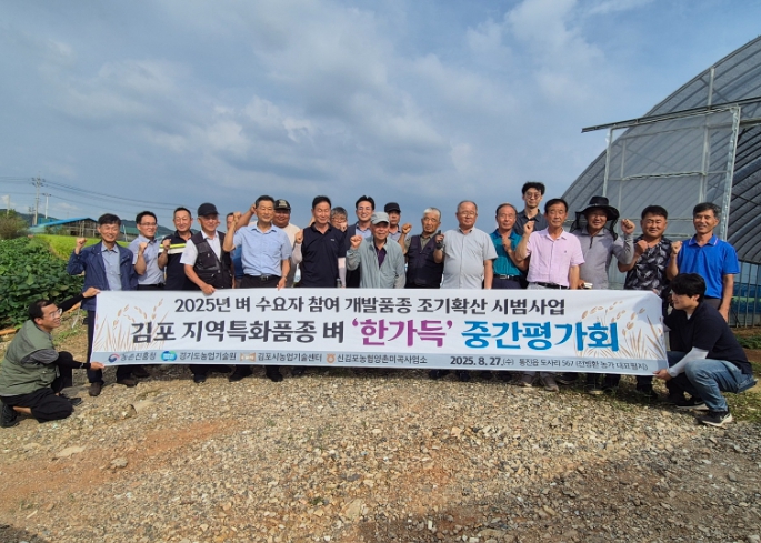 시범사업 단체인 신김포농협양촌RPC는 24명의 조합원을 대상으로 176필지 50㏊에 ‘한가득’을 시범 재배 중이다. 온탕소독기를 비롯한 한가득 전용 건조기를 설치하고, 질소 시비량(1,000㎡ 기준 7, 9, 12㎏(관행))에 따른 생육 비교해 2026년 확대 재배를 위한 채종포를 하성면 마근포리 일원에 약 1㏊ 정도 조성했다.