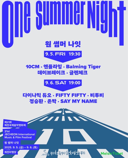 공연 라인업도 그 어느 해보다 강력하다. 대표 공연‘원썸머 나잇’은 9월 5일 오후 7시 30분과 9월 6일 오후 7시 이틀간 제천비행장에서 열린다. 첫날은 10CM, 엔플라잉, 바밍타이거, 데이브레이크, 글렌체크 등 인디, 록, 일렉트로닉 씬을 이끄는 아티스트들이 한데 모여, 뜨겁고 자유로운 에너지를 터뜨린다. 이어지는 둘째 날에는 다이나믹듀오, 피프티피프티, 비투비, 정승환, 존박, 세이마이네임이 세대와 장르를 넘나드는 무대로 밤하늘을 수놓는다. 두 밤의 공연은 단순한 무대를 넘어, 제천에서만 느낄 수 있는 깊은 울림과 에너지로 관객을 사로잡을 것이다.