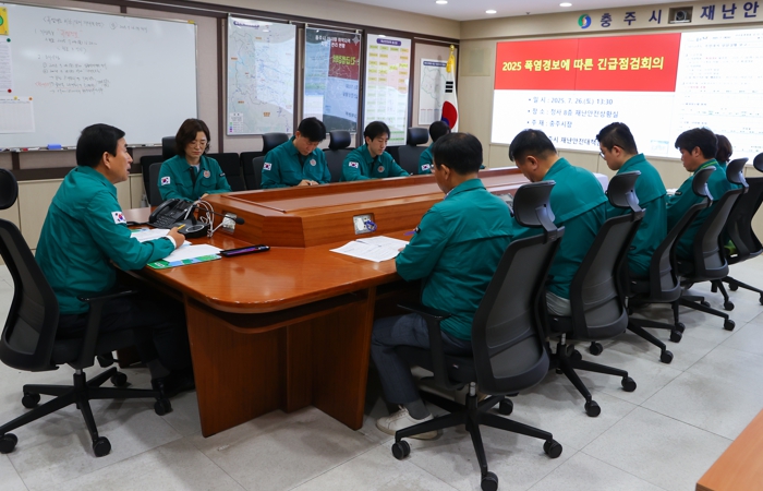 조길형 충주시장은 26일 오후 2시 시청 재난안전상황실에서 폭염 대응 긴급 점검회의를 열고, 폭염 피해 현황과 대응 체계를 종합 점검했다.