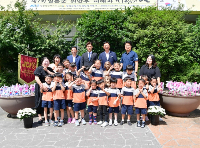 올해 행사에는 청년회의소 회원과 청소년 동아리 ‘소나무’(소중한 너를 향한 나의 무한한 사랑) 소속 학생, 지역 어린이집 아이들, 김한종 장성군수, 도·군의원 등 50여 명이 참석했다.