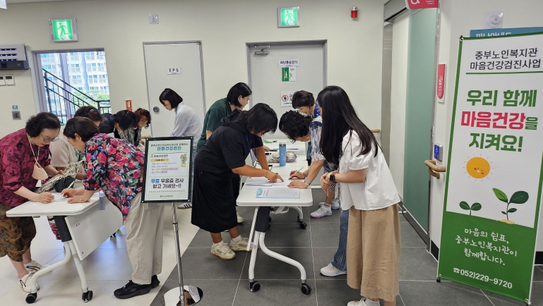이번 마음건강검진은 울주군정신건강복지센터와 연계하여 노년기 심리·정서적으로 위험에 노출되어 있는 복지관 어르신들을 대상으로 우울증 자가진단 검사를 실시함으로써 잠재적 위험에 노출되어 있는 대상자 발굴 및 검사 후 고위험군 희망자에 한하여 우울예방 집단상담 및 전문상담을 연계할 예정이다.