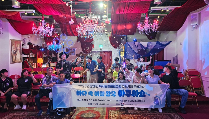 특히 주제 도서를 읽은 뒤 테라리움, 도어벨, 샴푸바 만들기 등 다양한 독후활동을 연계해 참여자들이 심리적 안정과 정서적 만족을 느낄 수 있도록 했다. 마지막 문화탐방에서는 동화책을 바탕으로 한 ‘버블 아쿠아쇼’에 직접 참여하며 성취감과 즐거움을 함께 누려 높은 호응을 얻었다.