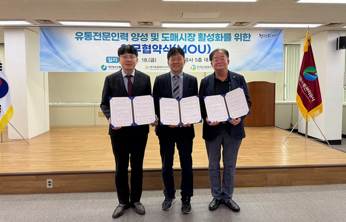 협약식에는 김상덕 대구농수산물유통관리공사 사장, 서영석 대구농업마이스터고 교장, 김술식 (사)한국농산물중도매인조합 대구광역시 연합회장을 비롯해 실무 관계자들이 참석했다.
