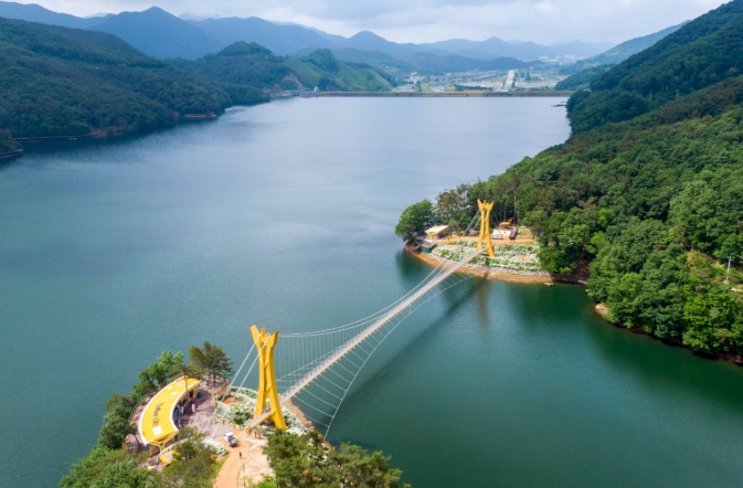 출렁정은 수변길 입구에서부터 도보로 20여 분, 약 1km 가량 떨어진 옐로우 출렁다리 시작점에 있다.