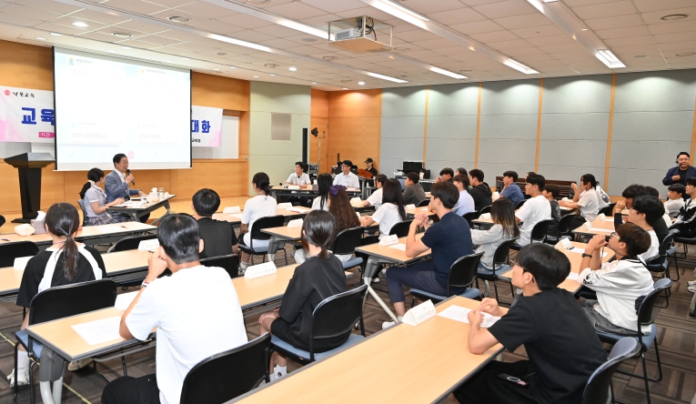 학생들은 ‘교육감님, 그때는 어땠나요?’, ‘우리의 목소리를 들어주세요’ 등 다양한 주제로 직접 질문하고, 임종식 교육감이 현장에서 즉석 답변하는 형식으로 세대 간 격의 없는 대화가 이뤄졌다.