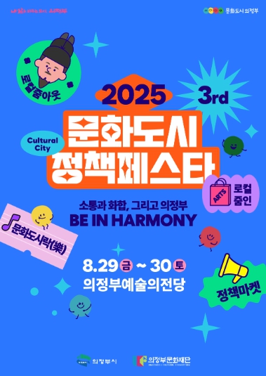 올해 세 번째로 맞는 정책페스타는 '소통과 화합, 그리고 의정부 BE IN HARMONY' 라는 주제로 ▲문화도시락(樂) ▲정책마켓 ▲로컬 줌-인 ▲로컬 줌-아웃 등 4개의 주요 섹션 아래 총 10개의 프로그램이 진행된다.