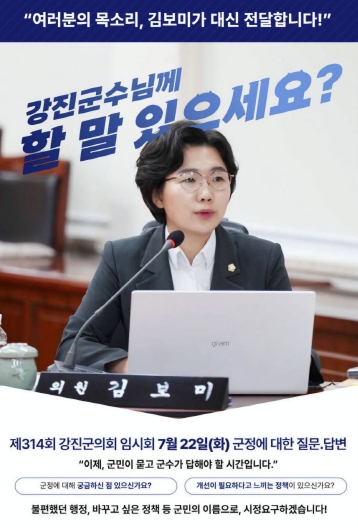 이와 함께 김 의원은 강진군 계약정보공개시스템의 구조적 문제를 강하게 지적했다. “이 시스템은 수년간 수차례 지적됐음에도 불구하고 전혀 개선되지 않았고, 지금은 강진군 행정의 구조적 불공정을 은폐하고 정당화하는 ‘가림막’으로 작동하고 있다”고 질타했다.