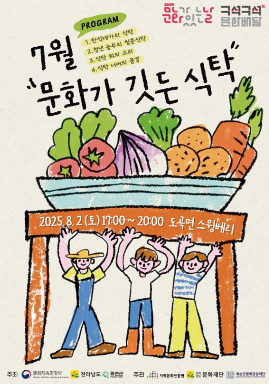 ‘구석구석 문화배달’은 문화체육관광부가 매달 마지막 주 ‘문화가 있는 날’을 기점으로 전국 문화 소외지역에 문화 콘텐츠를 직접 배달하는 지역 밀착형 순회 사업이며, 공연·전시·체험 등 다양한 형식으로 화순군 구석구석에서 진행 중이다.