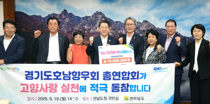 김영록 전남도지사는 “어려운 경기 속에서 전남 발전을 위해 기부에 동참해줘 감사하다”며 “먼 곳에서도 항상 마음 한 켠 고향에 대한 인연을 간직하고, 응원해주는 사랑에 보답할 수 있도록 노력하겠다”고 말했다.