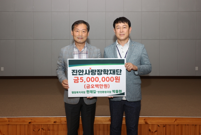 이에 전춘성 진안사랑장학재단 이사장은 “지역 인재 양성에 깊은 관심을 보여주신 두 국장님께 진심으로 감사드린다”라며, “기탁 해주신 소중한 장학금은 진안의 미래를 짊어질 학생들이 꿈을 향해 나아가는 데 큰 도움이 될 것”이라고 화답했다.