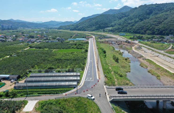 이번에 개통된 구간은 연장 402m, 폭 10m의 2차선 도로로, 총사업비 15억 원을 들여 올해 3월 착공 후 약 6개월 만에 준공을 앞두고 있다.