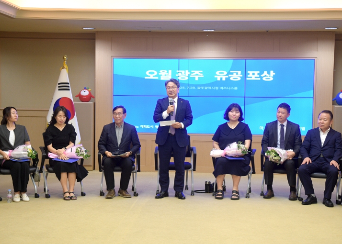 광주광역시는 28일 시청 비즈니스룸에서 ‘2025 오월광주 유공자 포상식’을 열어 제45주년 5·18민주화운동 기념행사의 성공 개최에 기여한 유공자와 단체를 표창했다.