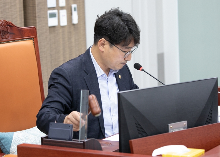조성환 위원장은 “의결에 앞서 기획조정실장님께 한 가지 당부드리고자 한다”며, “이번 개정안에는 의회사무처 의정국 신설과 관련해, 의회사무처 내부적으로 조직을 개편하는 시행규칙이 준비 중인 것으로 알고 있다. 따라서 본 개정안이 의결되면 공포 시점에 맞춰 해당 시행규칙도 함께 공포될 수 있도록 기획조정실에서 관심을 갖고 조속히 처리해주시기를 부탁드린다”고 말했다.
