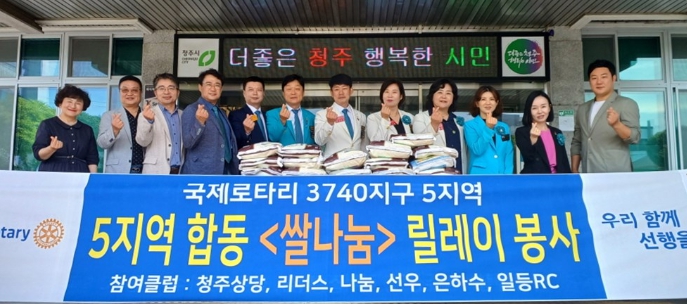 청주국제로타리 5지역은 각종 행사와 신규회장 취임 시 축하 화환 대신 받은 쌀을 모아서 후원 물품을 마련했다.