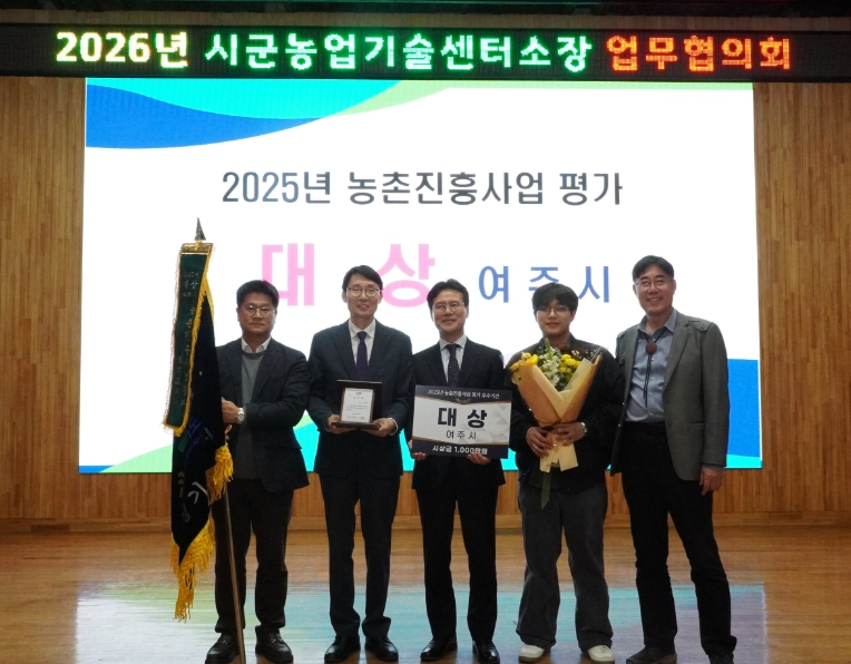 여주시농업기술센터는 여주시 농업 발전을 위해 농업인과 함께 힘써 온 결과, 2025년 기관평가에서 2년 만에 다시 ‘대상’을 수상하는 성과를 거뒀으며 분야별 우수사례 평가(기술보급분야)에서도 ‘우수상’을 수상했다. 이번 기관평가 발표는 전창현 기술기획과장이 기관 대표로, 분야별 평가 발표는 이화영 기술보급과장이 맡아 수행했다.
