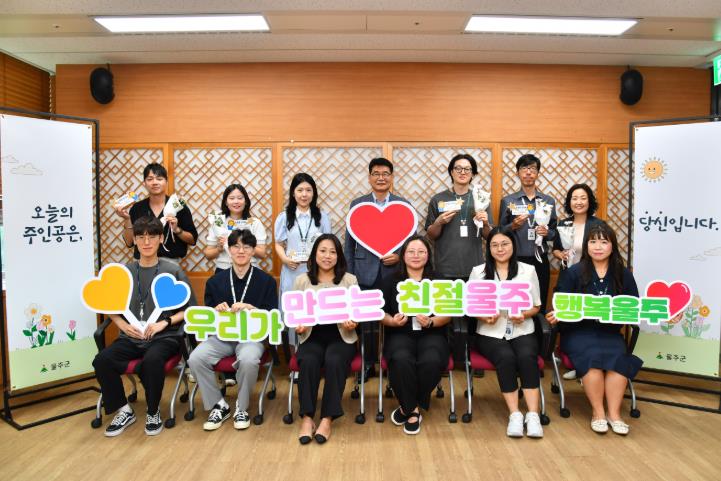 이번에 선정된 친절공무원은 지난 4월부터 6월까지 울주군청 홈페이지와 국민신문고, 민원처리 만족도 조사 등에서 칭찬 사례가 접수된 공무원 15명이다.